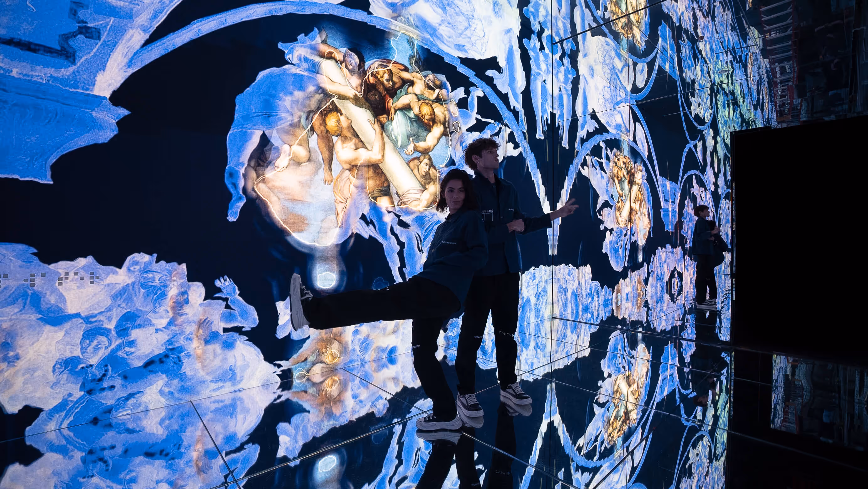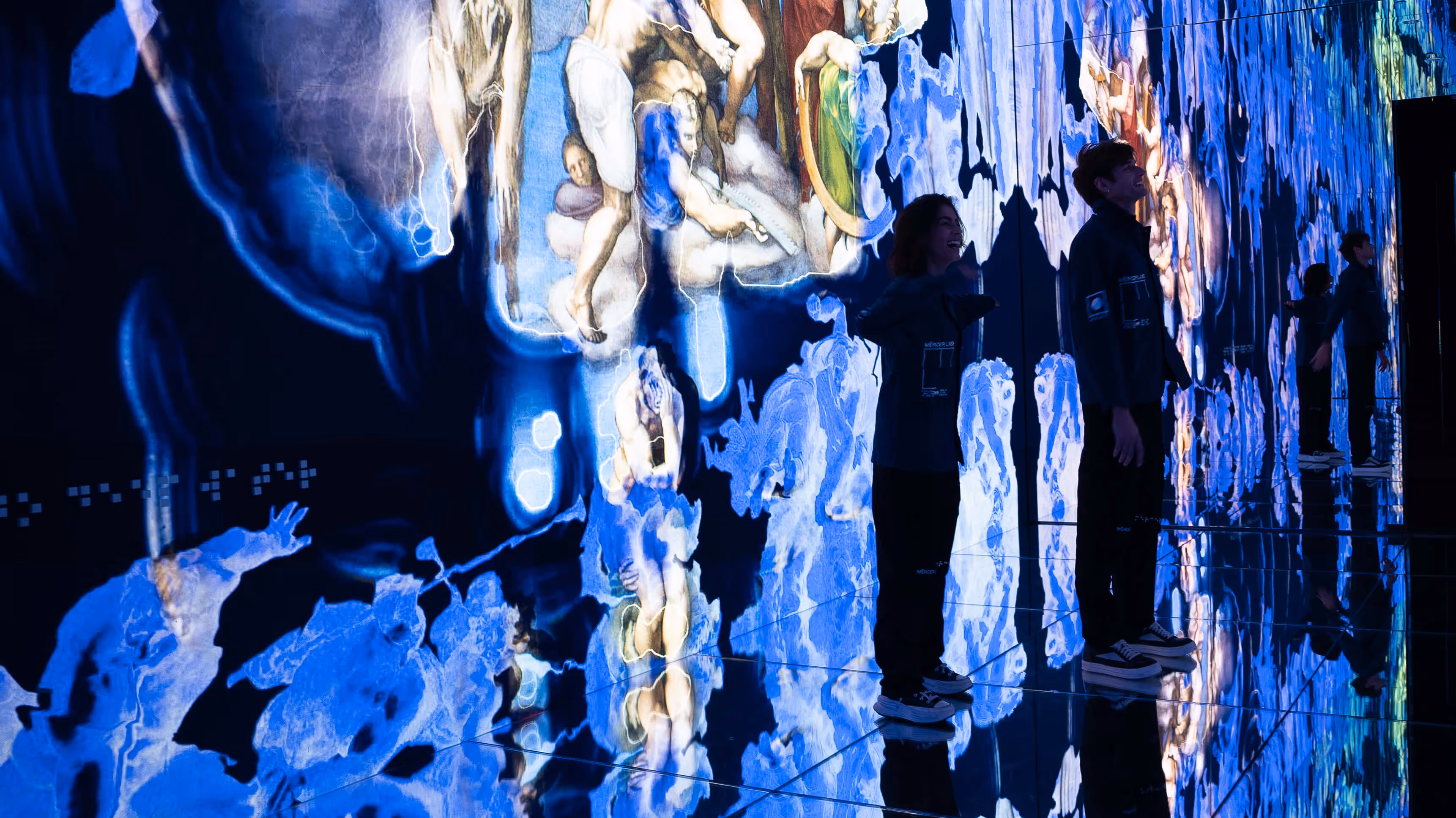 Step into Infinite, where mirrors, massive screens, and real-time motion tracking place you inside shifting works of art. Your reflection merges with Michelangelo and more, multiplying into infinity in a living digital tableau.