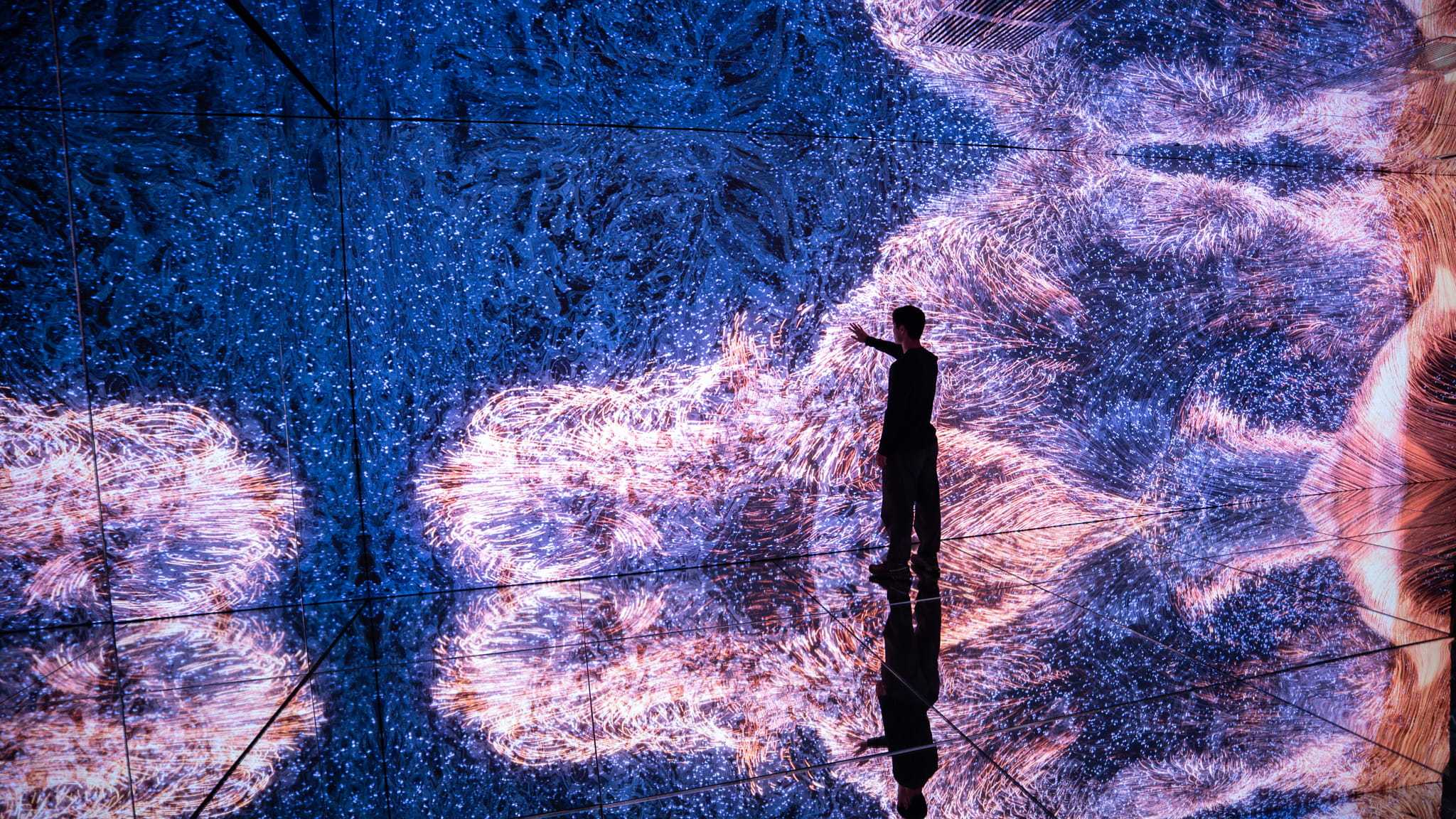 A responsive, immersive environment where light, sound, and a shifting orb of particles move with you, placing you inside an infinite, ever-changing space that evolves with your presence.