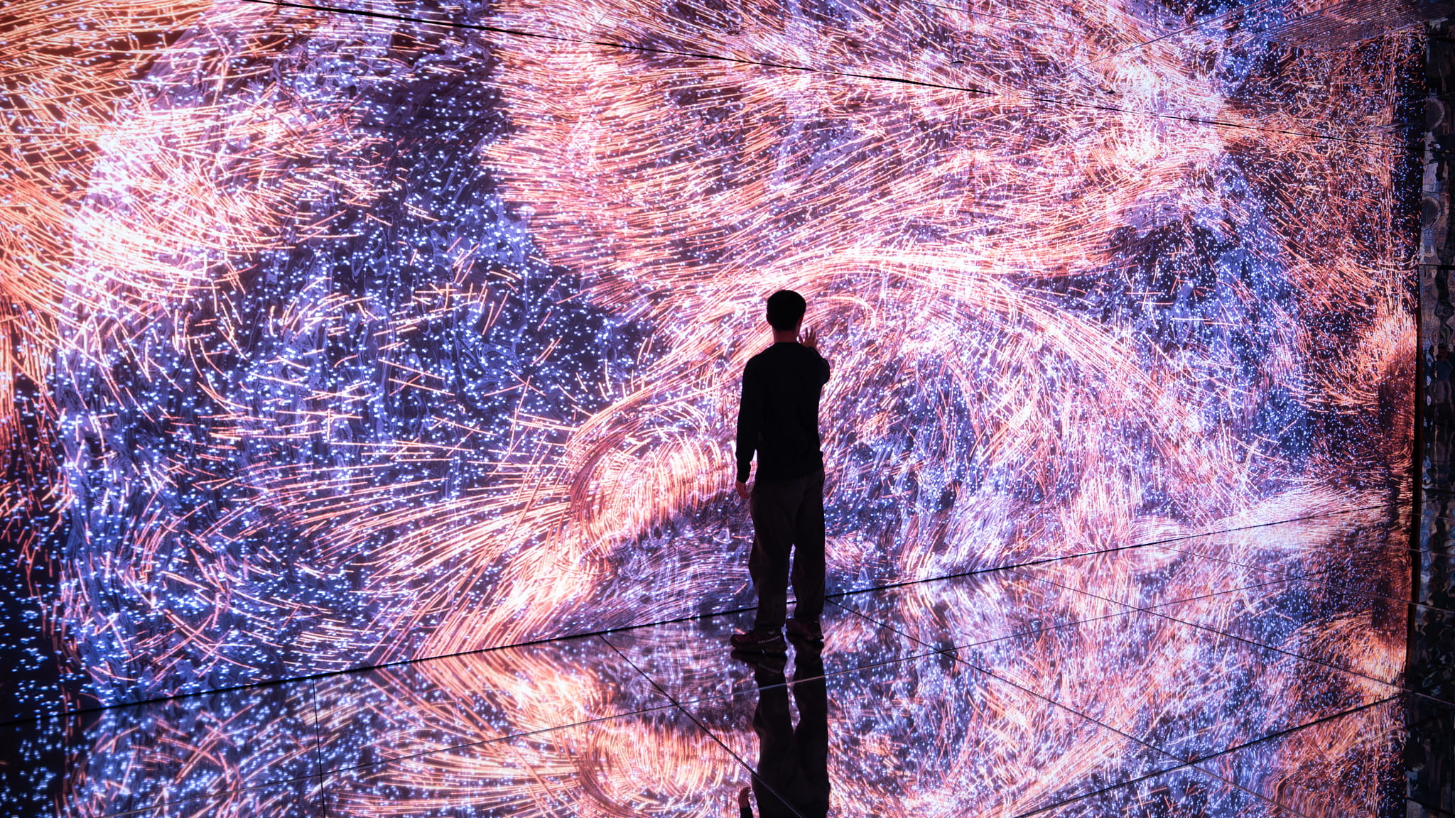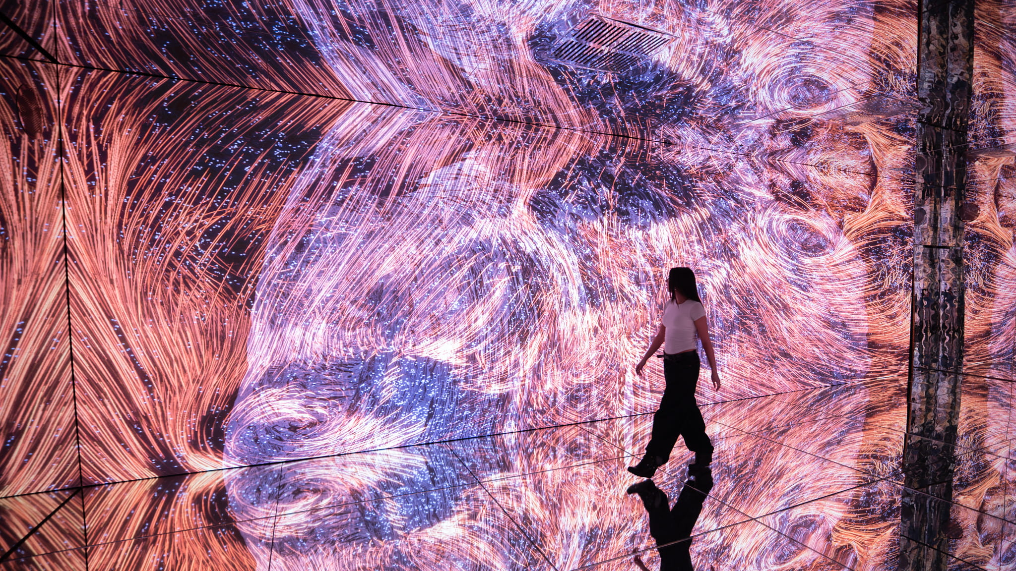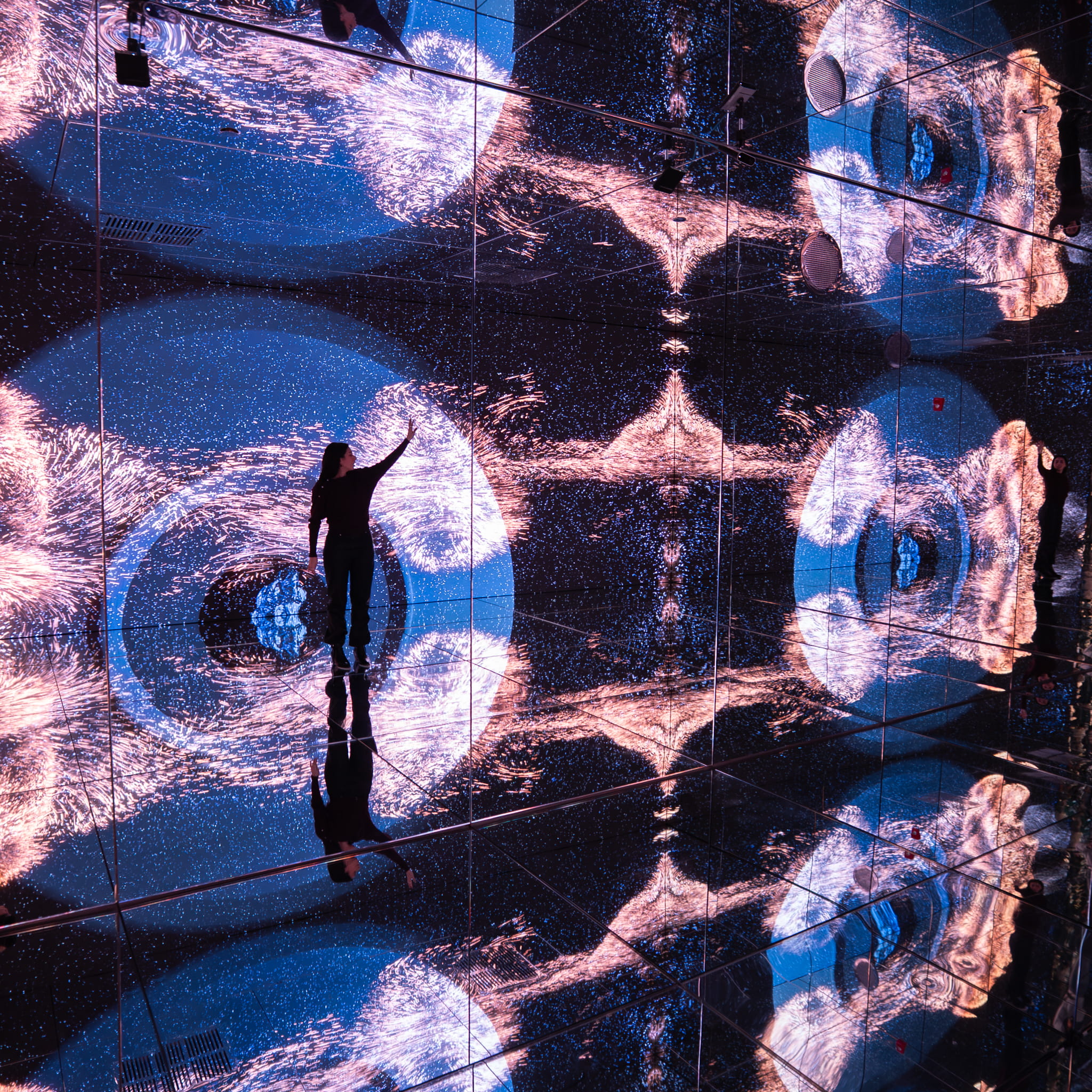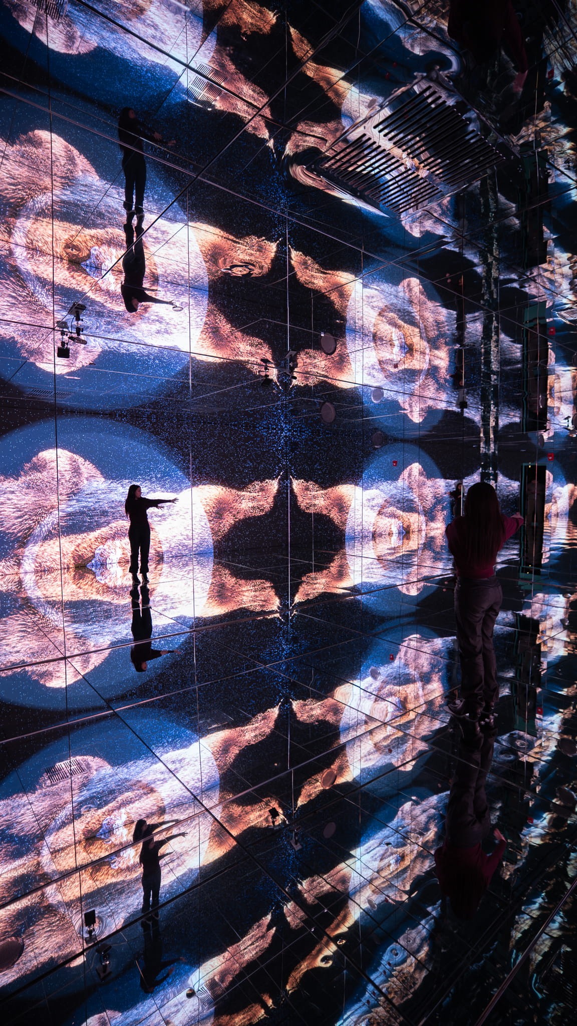 The Engine is both artwork and instrument — a living environment built from mirrored architecture, large-scale screens, and responsive technologies that together form the axis of the museum. Designed as a space that can continuously transform, it functions as a portal where light, sound, and sensory elements reshape the room in ever-changing ways.